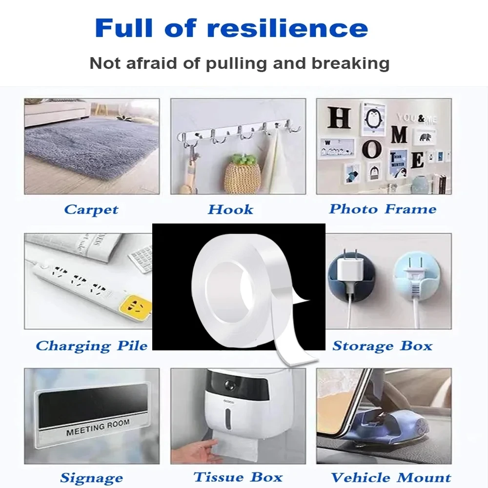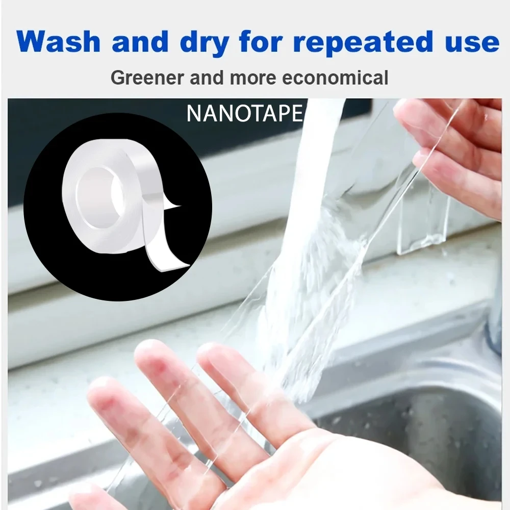 Fita adesiva dupla face 1/2/3/5M Nano Tape Tracsless Double Sided Tape Transparent No Trace Reusable Waterproof Adhesive Tape Cleanable Home Gekkotape